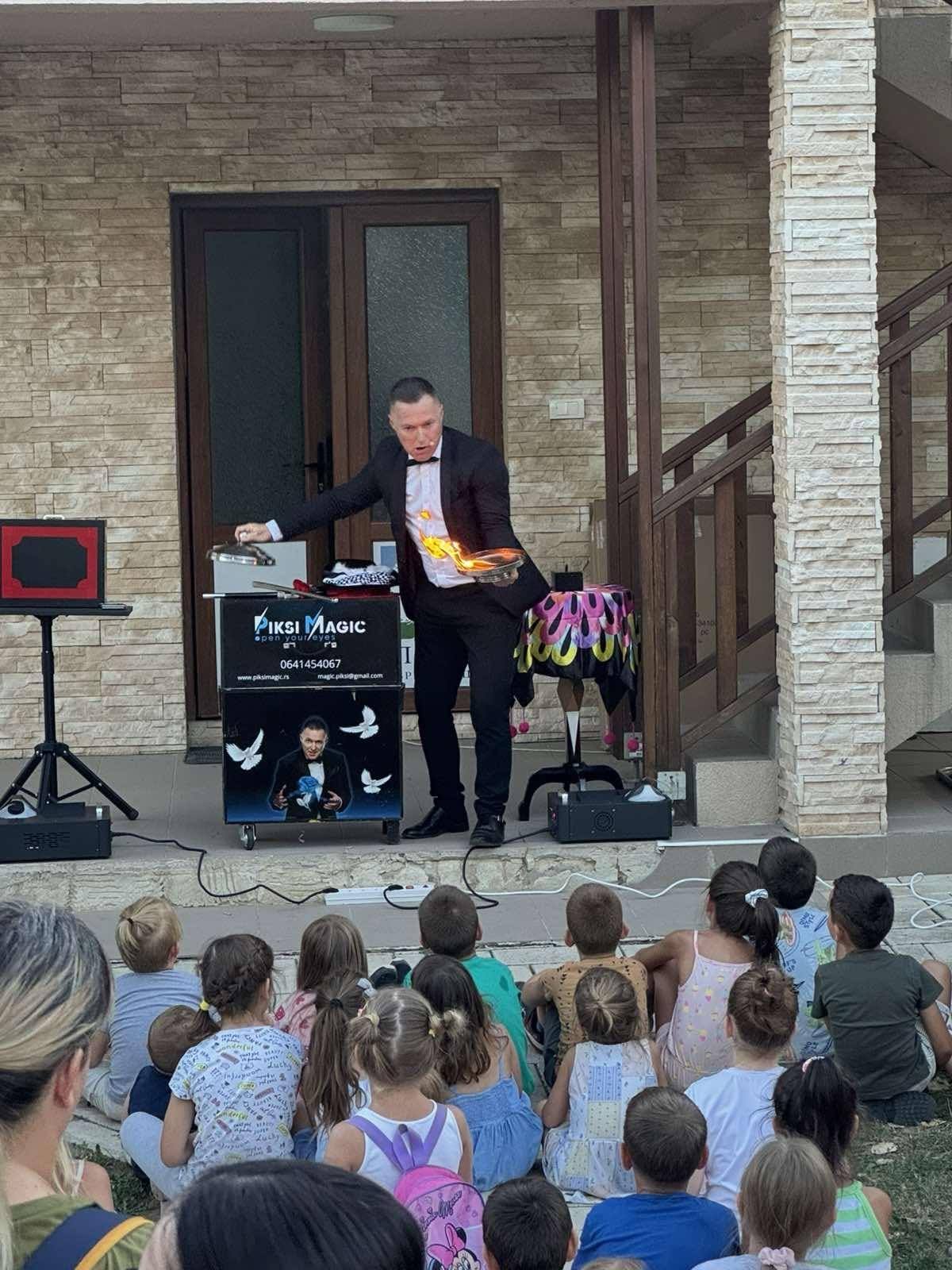 U okviru kolonije koju organizuje JP SKC „Obrenovac“ održana je i vajarska radionica za najmlađe, koji su se nakon toga družili sa Piksijem mađioničarem.