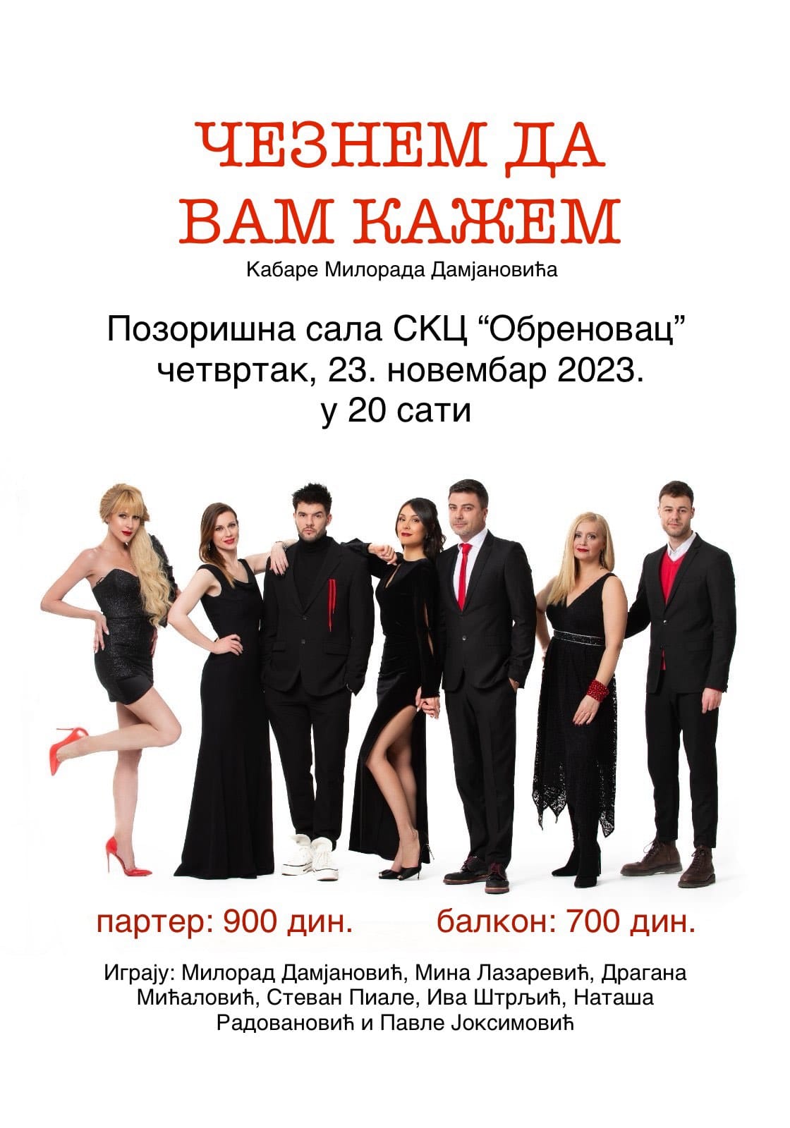 Poetsko muzički kabare “Čeznem da vam kažem“ biće odigran u pozorišnoj sali Sportsko-kulturnog centra “Obrenovac“ u četvrtak, 23. novembra sa početkom u 20.00 sati.