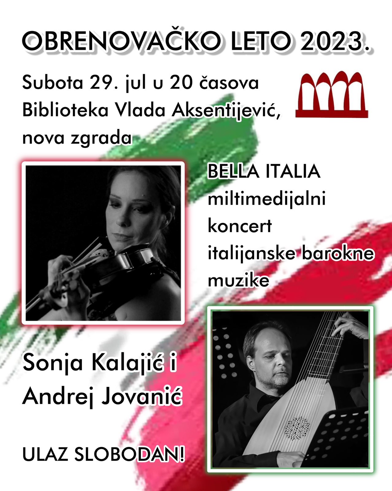 U subotu, 29. jula sa početkom u 20.00 sati u novoj zgradi biblioteke “Vlada Aksentijević“ biće održan multimedijalni koncert italijanske barokne muzike.