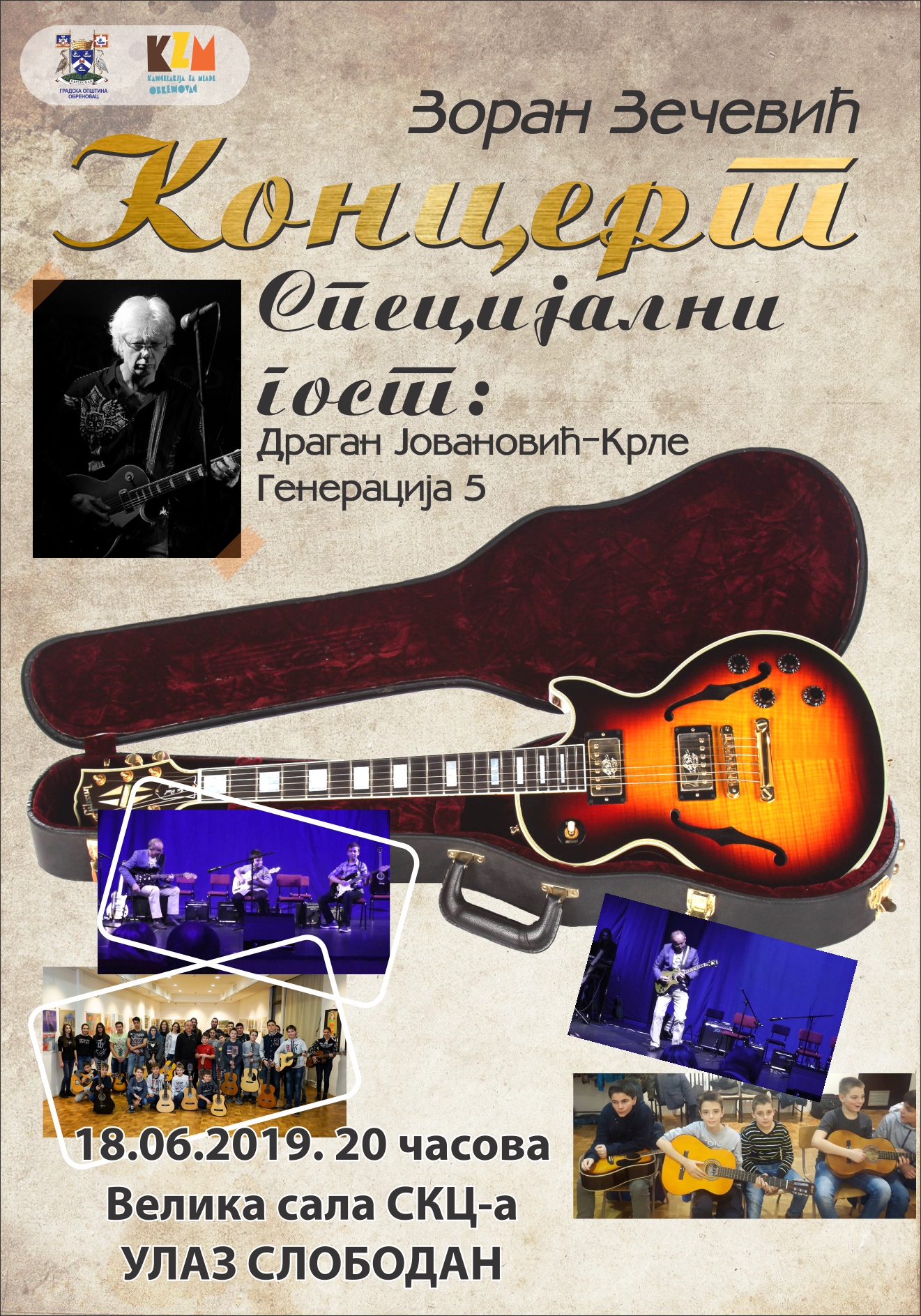 Концерт полазника школе модерне гитаре одржаће се у уторак, 18. јуна, од 20.00 часова у Великој сали СКЦ Обреновац. Научене лекције показаће садашњи и бивши полазници школе, док ће специјални гост бити Драган Јовановић Крле гитариста групе Генерација 5.