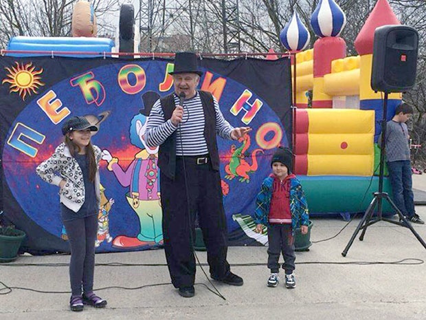 Peđolino na sceni kao klovn, glumac, pevač i animator peva nove songove na stihove naših poznatih pesnika.