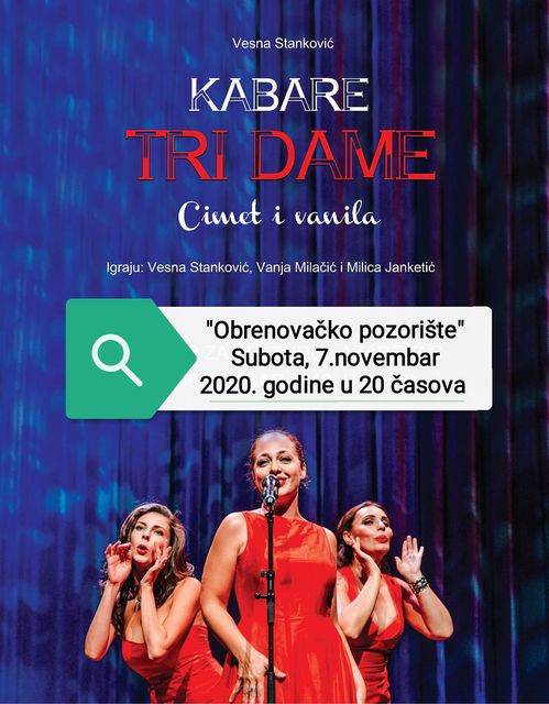 Pozorišna predstava “Cimet i vanila“ biće izvedena na sceni “Obrenovačkog pozorišta“ u subotu, 7. novembra sa početkom u 20.00 sati.
