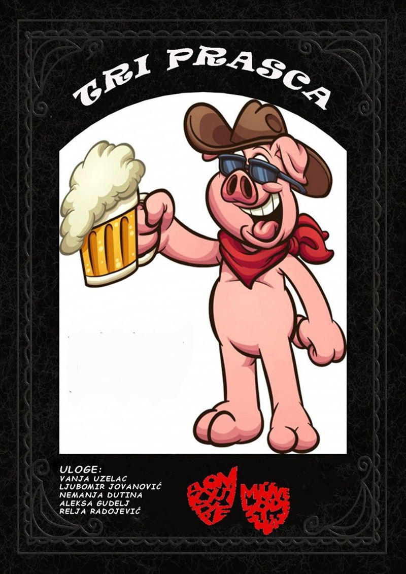 „Три прасца“ – прва асоцијација свакако јесте прича о три прасета и њиховој борби са вуком. Ипак, уколико размислимо о конотацији речи прасац, свакако постајемо сигурни да ће дело које је пред нама изневерити наша очекивања. Да ли ће се пред нама наћи бајка у свом новом облику, прилагођеном аршинима 21. века или су нас аутори у потпуности заварали насловом, сазнаћемо 6. фебруара у 19 часова у малој сали у “Обреновачком позоришту”.