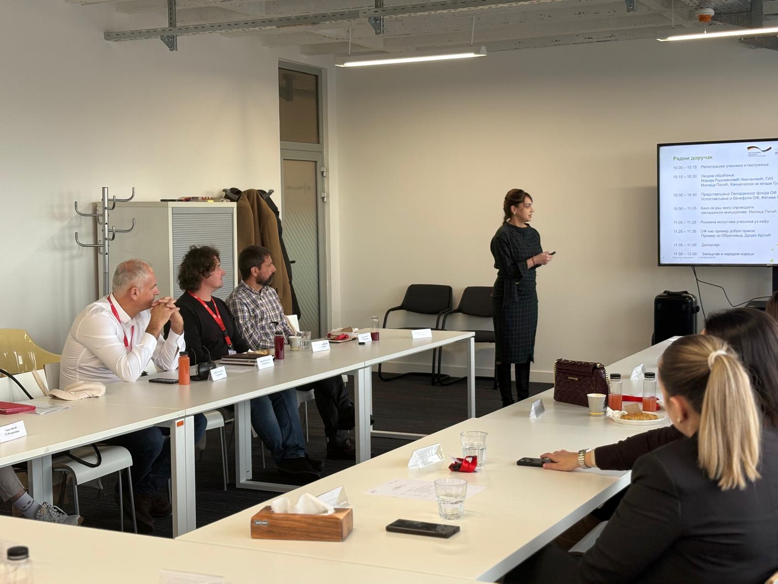 У просторијама ГИЗ-а у Београду одржан је радни доручак посвећен представљању Омладинског фонда, партиципативног модела који подстиче активно учешће младих у развоју локалних заједница. Догађај је одржан у организацији Канцеларије за младе Града Београда и пројекта „Перспективе за младе у руралним срединама“, уз подршку Министарства туризма и омладине.