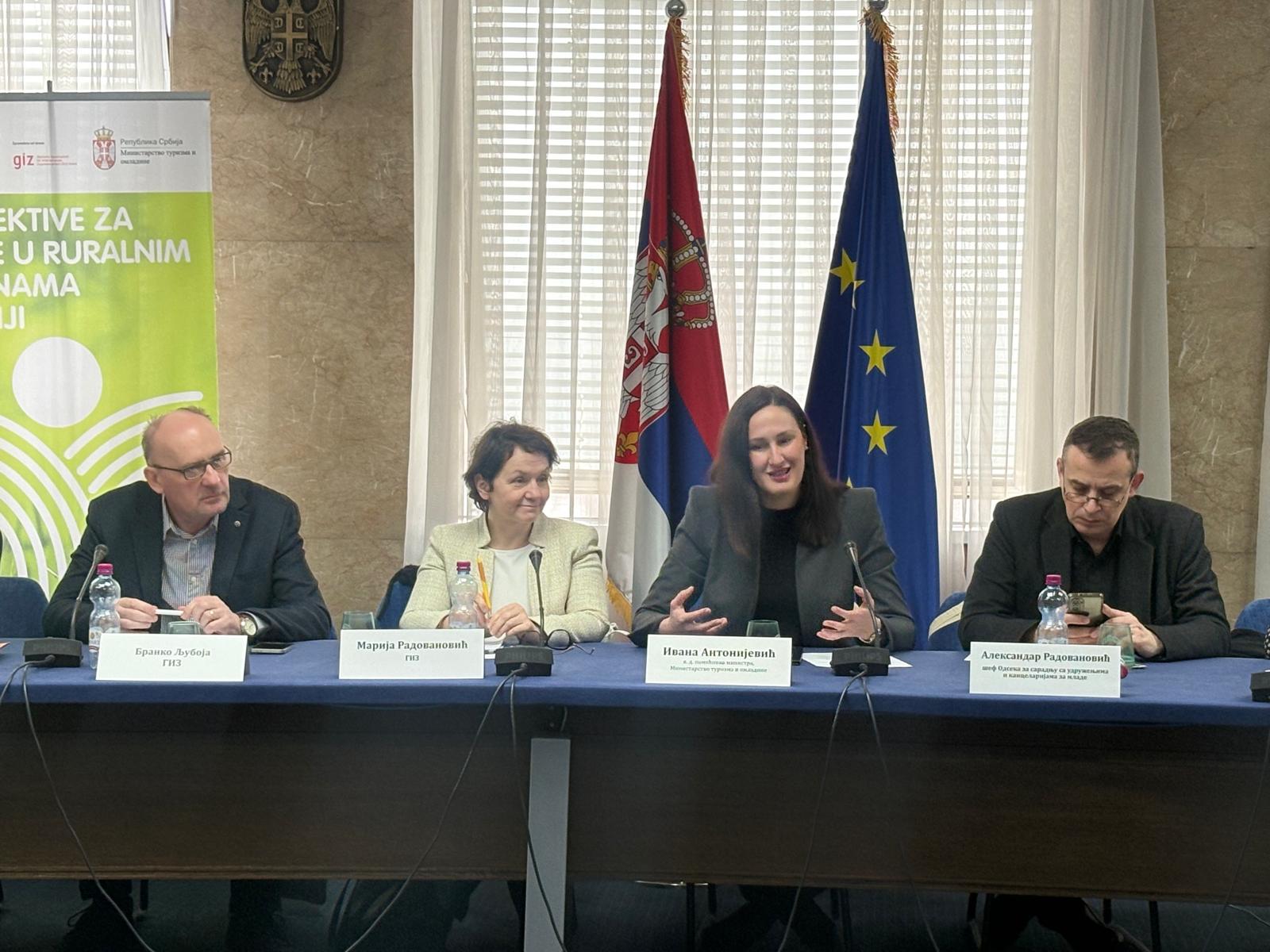 Povodom završnice projekta „Perspektive za mlade u ruralnim sredinama u Srbiji“ koji se sprovodi u partnerstvu sa Ministarstvom turizma i omladine od strane Deutsche Gesellschaft für Internationale Zusammenarbeit (GIZ) GmbH, u okviru Nemačke razvojne saradnje u Srbiji održan je sastanak u Palati Srbije na temu „Sumiranje rezultata projekta i održivost sprovedenih aktivnosti na lokalnom nivou“.